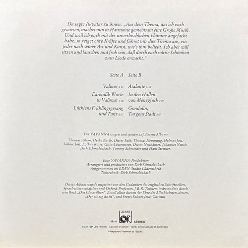 元EDENのDIRK SCHMALENBACHがグループ解散後に、トールキンの「指輪物語」を元にした楽曲を演奏する為にクリスチャンミュージシャンを集めたグループYAVANNA唯一のアルバム。シンセやストリングスをフィーチャーした壮大なシンフォロックを展開!サンプリングにもオススメ!