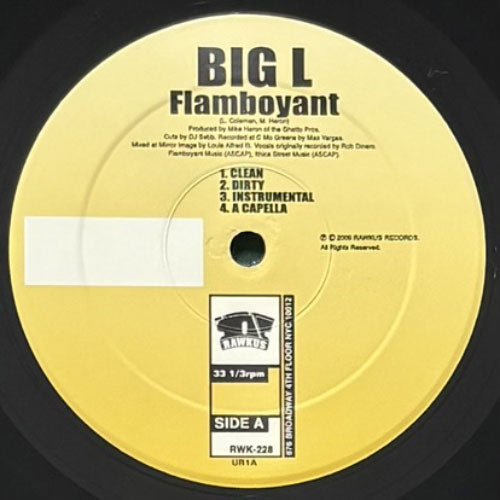 BIG Lの死後リリースされた2NDアルバム「The Big Picture」からのシングルカット。GHETTO PROS.のMIKE HERONが手掛け、DJ SEBBがカットしたJAMES GILSTRAP“Move Me”使いの“FLAMBOYANT”、故ROCK RAIDAが手掛けたアルバム未収録の“ON THE MIC”、両面ドープ!
