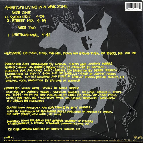 MALCOLM Xの愛娘GAMILAH SHABAZZ唯一のリリースとなった92年産シングル。多くのネタを詰め込んだファンキーなビートにICE CUBE、MMG、GRAND PUBA、MR. BIGGS、ME PHI MEが助太刀したニュースクール~ミドルスクールのナイストラック!ジャケット付きですが、ディスクは正規盤と同内容のプロモコピーです。