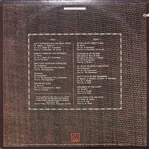 通算6枚目のスタジオ録音アルバム。ASHFORD & SIMPSON作MARVIN GAYE & TAMMI TERRELLの名曲カヴァー“AIN'T NOTHING LIKE THE REAL THING”、JOHNNY BRISTOLプロデュース、H.B. BARNUMアレンジによる“E-NE-ME-NE-MI-NE-MOE”、WILLIE HUTCHプロデュース、GENE PAGEアレンジによる“I CAN ONLY GIVE YOU LOVE”、“LOOKING' THROUGH THE WINDOWS”といったノーザンナンバー、イントロにブレイクが挿入されるWAYNE COCHRANで知られる“LITTLE BITTY PRETTY ONE”、メロウな“TO KNOW”などを収録した名作!1982年のリプレス。