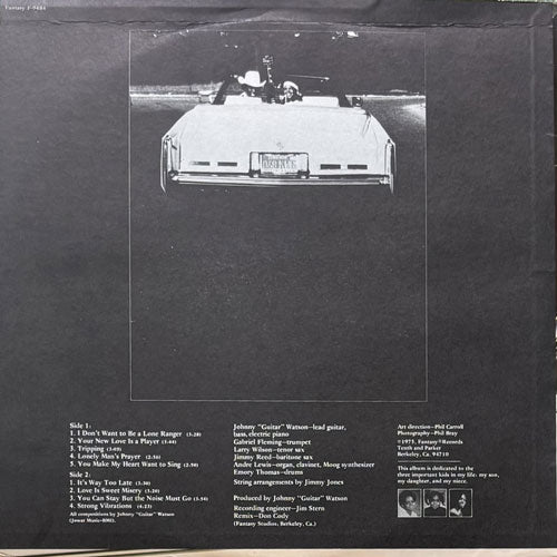 テキサス州ヒューストン出身のブルースシンガー/ギタリストJOHNNY GUITAR WATSONの75年作。後にセルフカヴァーする“I DON'T WANT TO BE A LONE RANGER”、JOELL ORTIZ“Mean Business”ネタに使われた“YOUR NEW LOVE IS A PLAYER”、STATIK SELEKTAHプロデュースREKS“Love Sweet Misery”ネタに使われた“LOVE IS SWEET MISERY”、9TH WONDER featuring PHONTE“Too Late”ネタに使われた“IT'S WAY TOO LATE”など、ファンキーからメロウまで彼にしか出せない味のある楽曲が並ぶ名作!