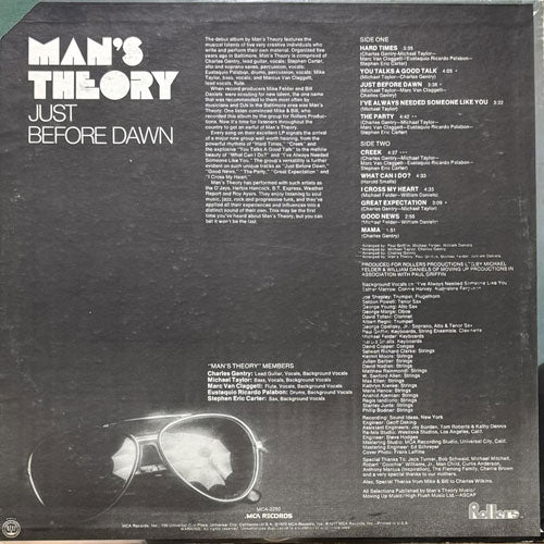 後にVINCE EBOとTHE FITを結成するギタリストCHUCK GENTLEYが在籍したボルチモアのファンクバンドMAN'S THEORY唯一のアルバム。爽快に疾走する“HARD TIMES”、重厚なファンクナンバー“THE PARTY”、ヘビーなベースにフルートやコーラスが軽やかに絡むミッドファンク“CREEK”、グルーヴィーソウル“JUST BEFORE DAWN”、歌心溢れるスウィートナンバー“WHAT CAN I DO?”などを収録した好作!