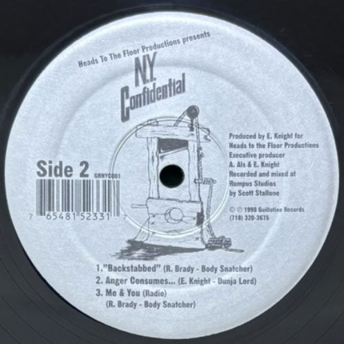 自主レーベル「GUILLOTINE」に2枚のシングルを残すブロンクスのグループN.Y. CONFIDENTIALの98年産シングル。CAMOUFLAGE LARGEのメンバーE. KNIGHTがプロデュース!“WHY?”“RUMORS OF WAR”“BACKSTABBED”“ANGER CONSUMES...”“Me & You”、いずれも掛け値なしのドープトラックを5曲収録!