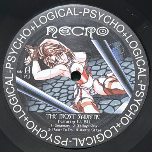 ILL BILLの弟NECROのデビューアルバム「I Need Drugs」からのシングルカット。兄ILL BILLをフィーチャーした“THE MOST SADISTIC”、PIERO UMILIANI“Nel Cosmo”使いの“YOU'RE DEAD”、STU PHILLIPS“Your Fuckin' Head Split”使いの“YOUR FXXXING HEAD SPLIT”、いずれもドープ!2NDプレス。