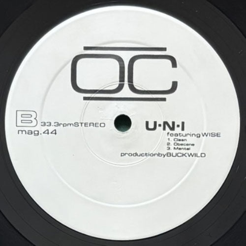 O.C.と盟友BUCKWILDによる自主制作の99年産シングル。BROTHERS JOHNSON“I Want You”使いの、フックでJAY-Zが参加した“BONAFIED”、JOHNNY PEARSON“Busy Aggregation”使いの“U-N-I”、両面渋い!