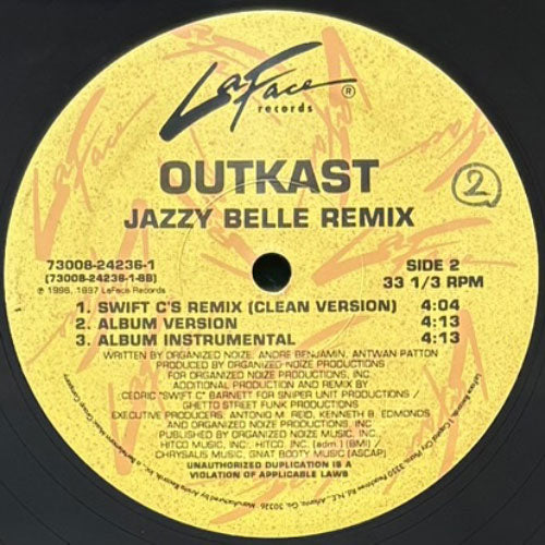ANDRE 3000とBIG BOIによるアトランタのスーパーデュオOUTKASTの2NDアルバム「ATLiens」からのシングルカット。LAMONT DOZIER“Prelude”を使った不穏でメロウなオリジナルヴァージョン、更にメロウネスを加えたSWIFT Cによるリミックス、両ヴァージョン共にナイス!