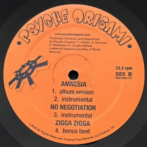 アトランタのトリオPSYCHE ORIGAMIの2002年産シングル。JURASSIC 5やPEOPLE UNDER THE STAIRSとかが好きな方にオススメ!