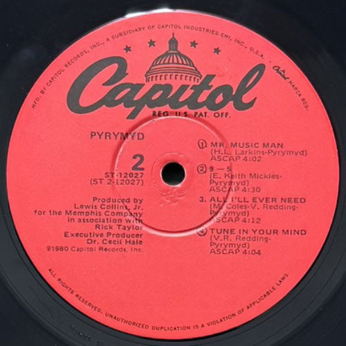 MEMPHIS HORNSのLEWIS COLLINS JR.がプロデュースを手掛けたファンクバンドPYRYMYD唯一のアルバム。ミックスにセレクトされた“WE'VE GOT LOVE TOGETHER”をはじめ、“SHAKE IT DOWN”“FLY TO PARADISE”“MR. MUSIC MAN”“9-5”“TUNE IN YOUR MIND”と重厚なモダンファンク~ブギーが充実した名作!メロウナンバー“I'M YOURS FOREVER”“ALL I'LL EVER NEED”もナイス!