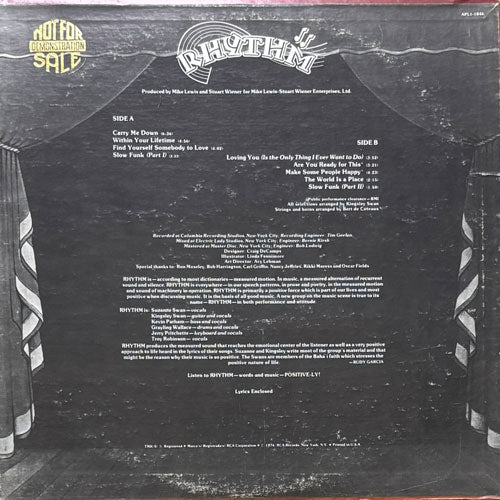 ギターのKINGSLEY、ヴォーカルのSUZANNEのSWAN夫妻を中心にボストンで結成されたファンクバンドRHYTHM唯一のアルバム。J. COLE“Sideline Story”、CRU featuring SLICK RICK“Just Another Case”、CONSEQUENCE“Disperse”、PLAYBOI CARTI featuring DA$H & MAXO KREAM“Fetti”、NIPSEY HUSSLE“Status Symbol”などのネタに使われた“THE WORLD IS A PLACE”が有名ですが、重厚なブギーファンク“ARE YOU READY FOR THIS”、メロウなミディアム“FIND YOURSELF SOMEBODY TO LOVE”、爽快なメロウファンク“CARRY ME DOWN”など、他の曲も素晴らしいです!