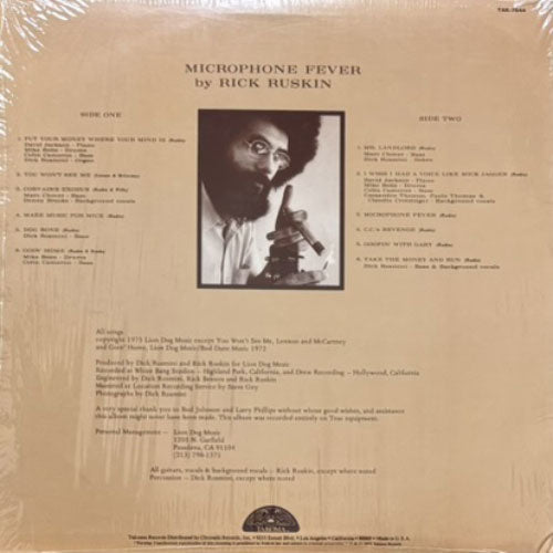 デトロイト生まれのシンガーソングライターRICK RUSKINが、JOHN FAHEYのレーベル「TAKOMA」からリリースした2NDアルバム。味わい深いアコースティック・ソングが並ぶ名作!ファンキーな“PUT YOUR MONEY WHERE YOUR MIND IS”のイントロにドラムブレイク!