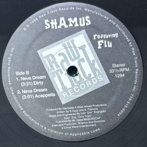 SKIがプロデュースした“Big Willie Style”で知られるブロンクス出身のプエルトリカン・ラッパーSHAMUSの96年産シングル。ミッド90'sニューヨークアングラ感臭プンプンの忘れ難きドープトラック!