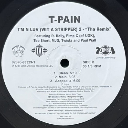 フロリダ州タラハシー出身のシンガーT-PAINがAKONの「KONVICT」からリリースしたデビューアルバム「Rappa Ternt Sanga」からのヒットシングル“I'M IN LUV (WIT A STRIPPER)”の、R. KELLY、PIMP C、TOO $HORT、MJG、TWISTA、PAUL WALLという豪華メンツをフィーチャーしたリミックス!