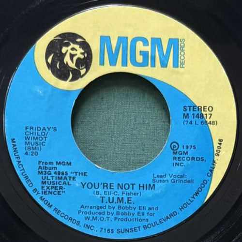 MFSBのBOBBY ELIが中心となって結成したスタジオミュージシャンによるグループT.U.M.E.唯一のアルバムからのシングルカット。SOOPAFLY, E-WHITE, RBX & SNOOP DOGG“Not Like It Was”、O.C. featuring PARTY ARTY“Strength”ネタに使われたグルーヴィーソウル“TELLING IT LIKE IT IS”、メロウソウル“YOU'RE NOT HIM”、両面ナイス!