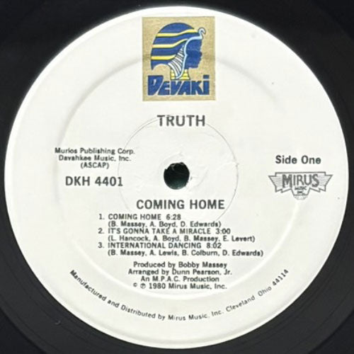 O'JAYSのBOBBY MASSEYが送り出し、元S.O.U.L.のLARRY HANCOCKが在籍したオハイオのコーラスグループTRUTHの80年作。“COMING HOME”“INTERNATIONAL DANCING”“TOUCH ME”のフィリーの流れを汲むダンスナンバーから、“IT'S GONNA TAKE A MIRACLE”“UNDERSTANDING”“SEE YOU LATER”のディープなスロウまで、アルバムを通して素晴らしい名作!