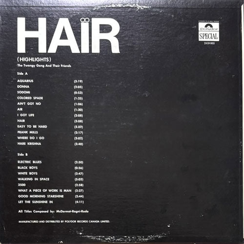 ドイツのロックバンドTWANGY GANGによるGALT MacDERMOTによるロックミュージカルの金字塔「Hair」のカヴァーアルバム。サイケ~ファンキーなアレンジでミュージカルヴァージョンのダイナミックさを再現しています!サンプリングにもオススメ!カナダプレス。
