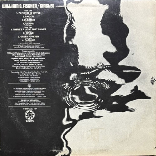 LES McCANN、JOE ZAWINUL、YUSEF LATEEF、ROBERTA FLACKなどの作品に参加しているキーボーディスト/アレンジャーWILLIAM S. FISCHERが、HERBIE MANNの「EMBRYO」からリリースした1STリーダーアルバム。ドープ・ブレイクビーツで始まる“PATIENCE IS VIRTUE”、LARGE PROFESSOR featuring BUSTA RHYMES“Straight From the Golden”ネタに使われた“CIRCLE”、“SAIGON”“GREEN FOREVER”といったジャズロック~ジャズファンクから、SHOW & A.G.“All Out”、DA BEATMINERZプロデュースFUNKDOOBIEST featuring EZD & KRUMB SNATCHA“Holdin' It Down”ネタに使われた“CAPSULE”、LOOTPACK“Lost Art”ネタに使われた“ELECTRIX”、“CHAINS”といったアヴァンギャルド・ジャズまで、BILLY COBHAM、HUGH McCRACKEN、RON CARTERらと怒涛のセッションを繰り広げた名作!